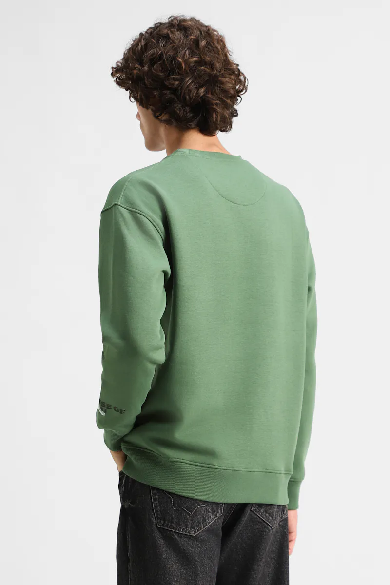 Bold sage green sweatshirt with a striking graphic print, crafted from a premium blend of 60% cotton and 40% polyester for unmatched comfort and durability. Perfect for casual outings, this regular-fit piece combines style and ease effortlessly.